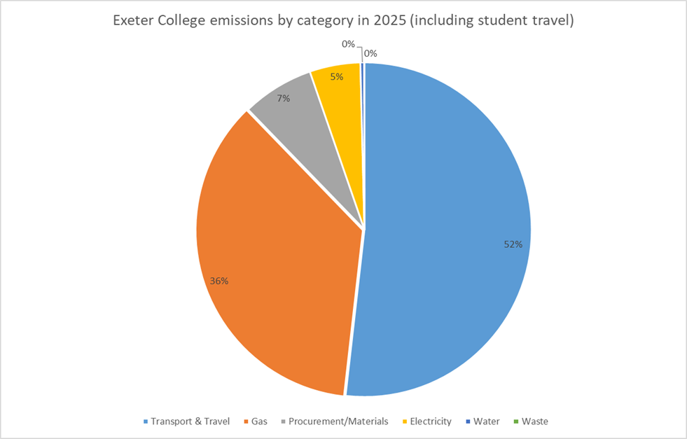 Exeter College emissions by catergory in 2025 (including student travel)