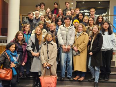 Exeter College English students posing on their trip to see Shakespeare's Othello