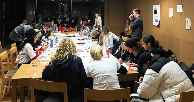 Students take part in a Poetry and Painting evening at Lincoln College
